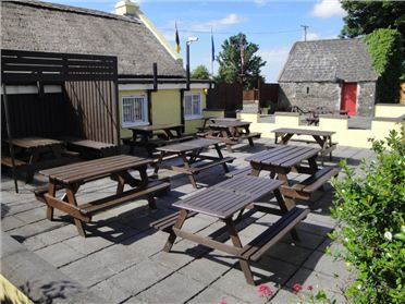Fully renovated and sympathetically refurbished in 2002, The Thatch Pub is in superb modern condition throughout, with a newly thatched roof, new wiring and plumbing, and a stylish traditional pub interior fit-out. The pub interior is completed in a traditional rustic decor, with quarry slate flooring, extensive pine wood work and wooden partitioning, and a fantastic assortment of traditional bric-a-brac and old instruments. The Thatch's warm rustic appeal is further enhanced by a raised open fire-place, built from salvage red brick with rustic plastering. Extending to over c. 2000 sq.ft. The Thatch Pub enjoys a thriving drinks business, with a large emphasis on food, serving breakfast, lunch and evening a la carte menus until late. The Thatch has acquired an excellent reputation for superb quality food, and has built on that reputation, utilising the potential of the busy N24's passing trade, and the large surrounding hinterland. Catering for large groups and parties, the thatch also caters for tour groups, providing traditional Irish cuisine and music to bus tours throughout the summer months. Other seasonal benefits to this superb premises is a large paved beer garden area to the rear of the pub, with huge potential to further develop this area to include out door catering, live music and bar facilities. The Thatch has also established quite a name for traditional music and acoustic music sessions, which are a weekly event at The Thatch.