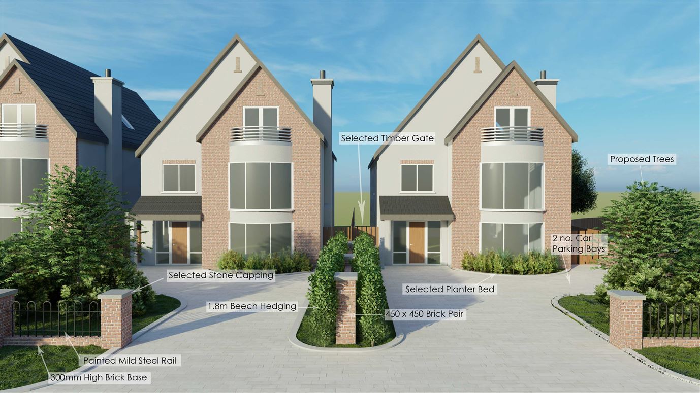 Shovel ready site with Full Planning Permission for Four No. Five bedroom split level detached homes. A grant of full planning permission received on the 22-8-19 for this development of four detached homes of c.248 sq.m / c.2,669 sq.ft. The site extends to c. 2,622 sq.m / 0.65 Acres with access provided to mains services. Each home extends to c. 248 sq.m / c. 2,669 sq.ft. and comprises of entrance hall, sitting room, open plan kitchen /dining and living room, utility room, WC, four bedrooms and two bathrooms at first floor level, with fifth bedroom, play room, bathroom and store room at second floor level.. Plans and details available upon request from DNG Reid & Coppinger Auctioneers.