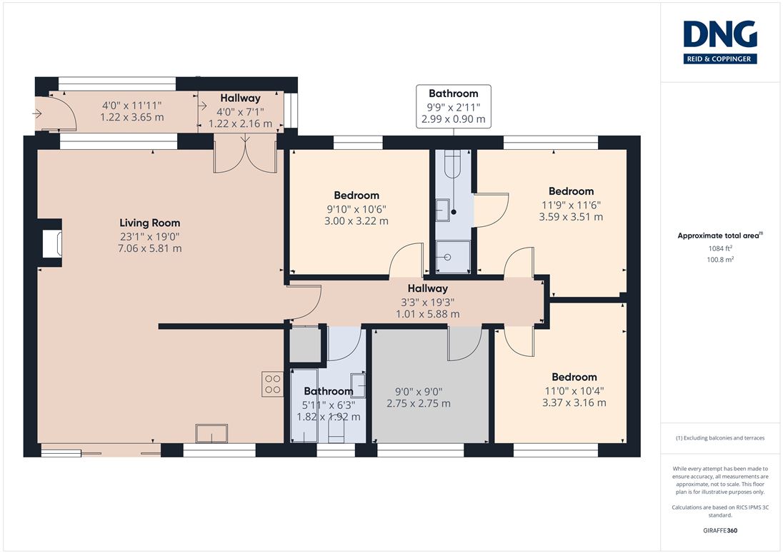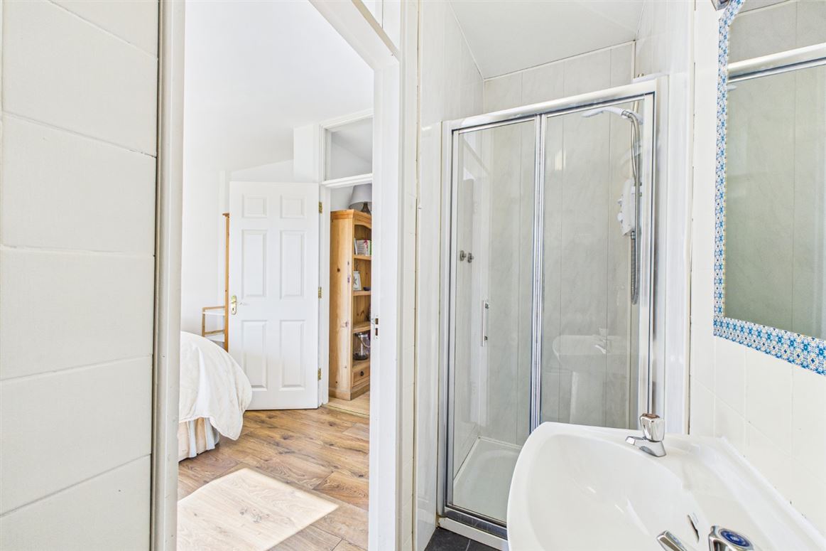Tiled flooring. WC. WHB. Triton electric shower unit with shower enclosure