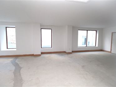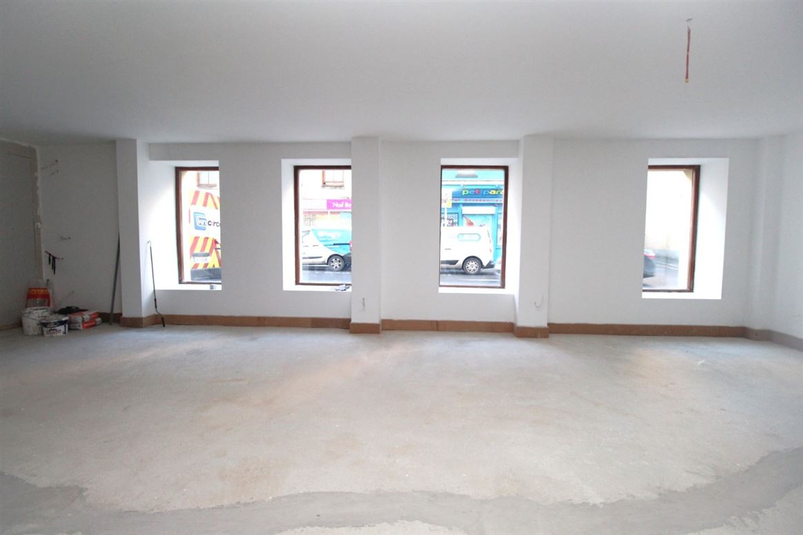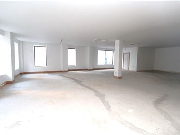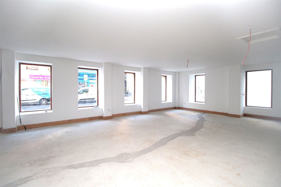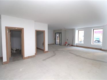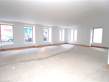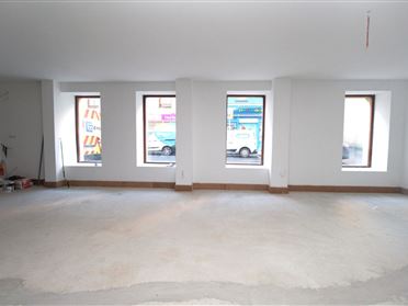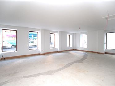 Ground floor only Retail Unit of c.1850 sq. ft. located on O'Connell Street in Waterford City, just off Merchants Quay. The property occupies the ground floor portion of No. 60 O'Connell Street with frontage onto both O'Connell St. and Penrose Lane, with entrance on O'Connell Street. The property is currently in a 'first fix' state, with plastered walls and first fix electrics. The property is zoned general business with retail planning permission, but would also suit alternative uses such as café, restaurant, salon or office use subject to the appropriate planning permission. The property is fully self-contained and shares a small rear yard area with the over-head apartments for the storage of refuse bins. The current layout comprises entrance lobby, two toilets, large open plan floor area, and a store room. Being a corner building, the unit has two external aspects and ample light from the array of windows to both elevations.