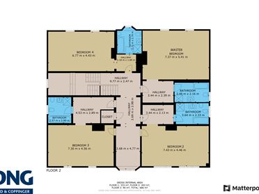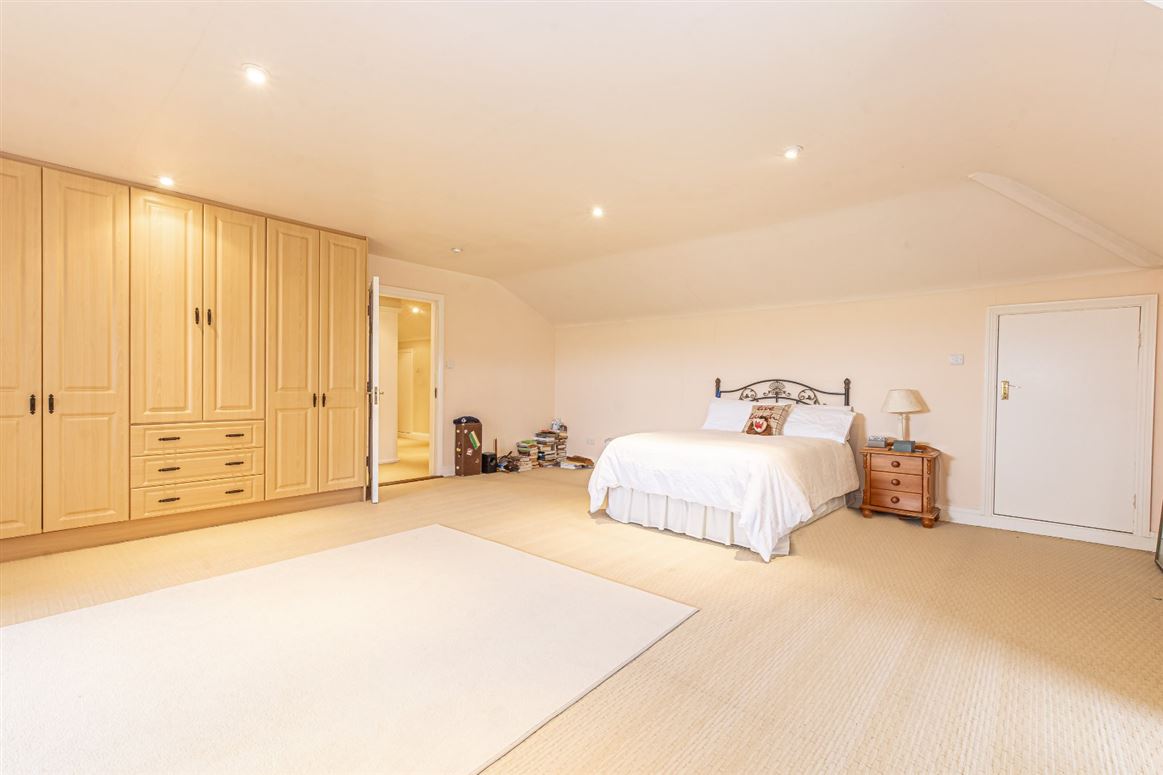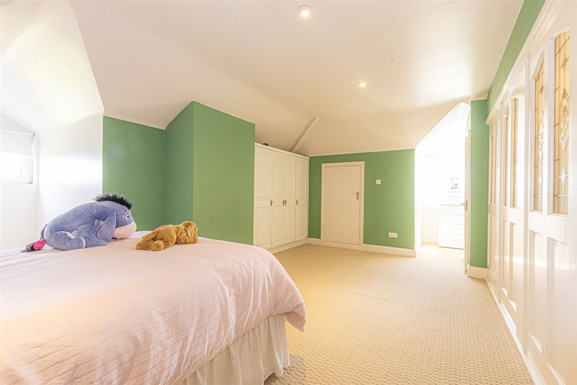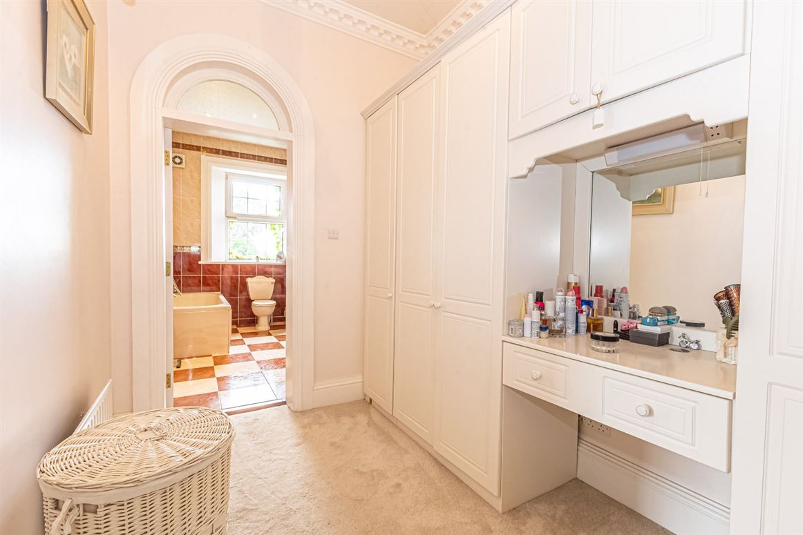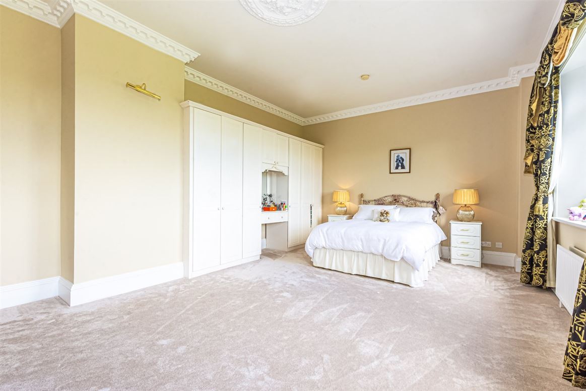 Considerably sized master bedroom suite with separate entrance hallway, and separate entrance doorway. Extensive fitted wardrobes and vanity / dressing area. Carpet flooring throughout. Coving to ceiling with centre rose. Curtains to windows.