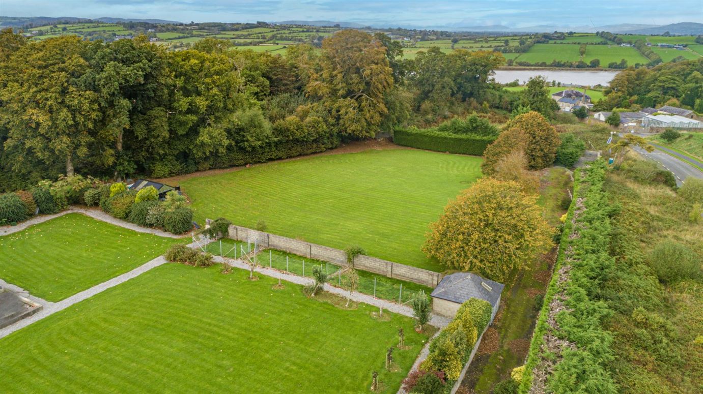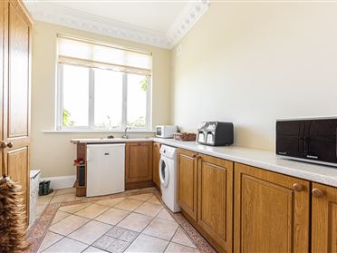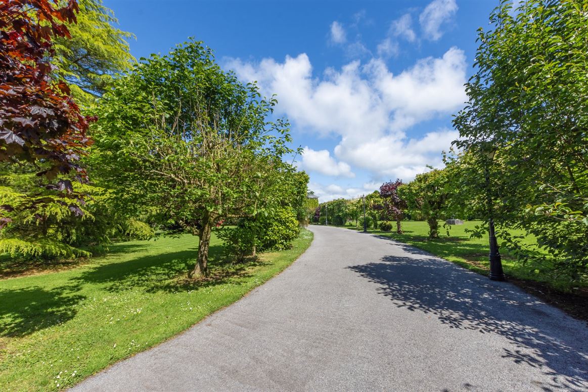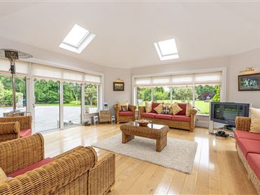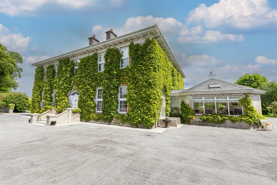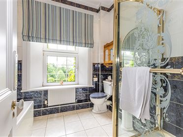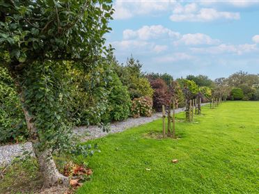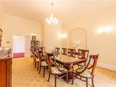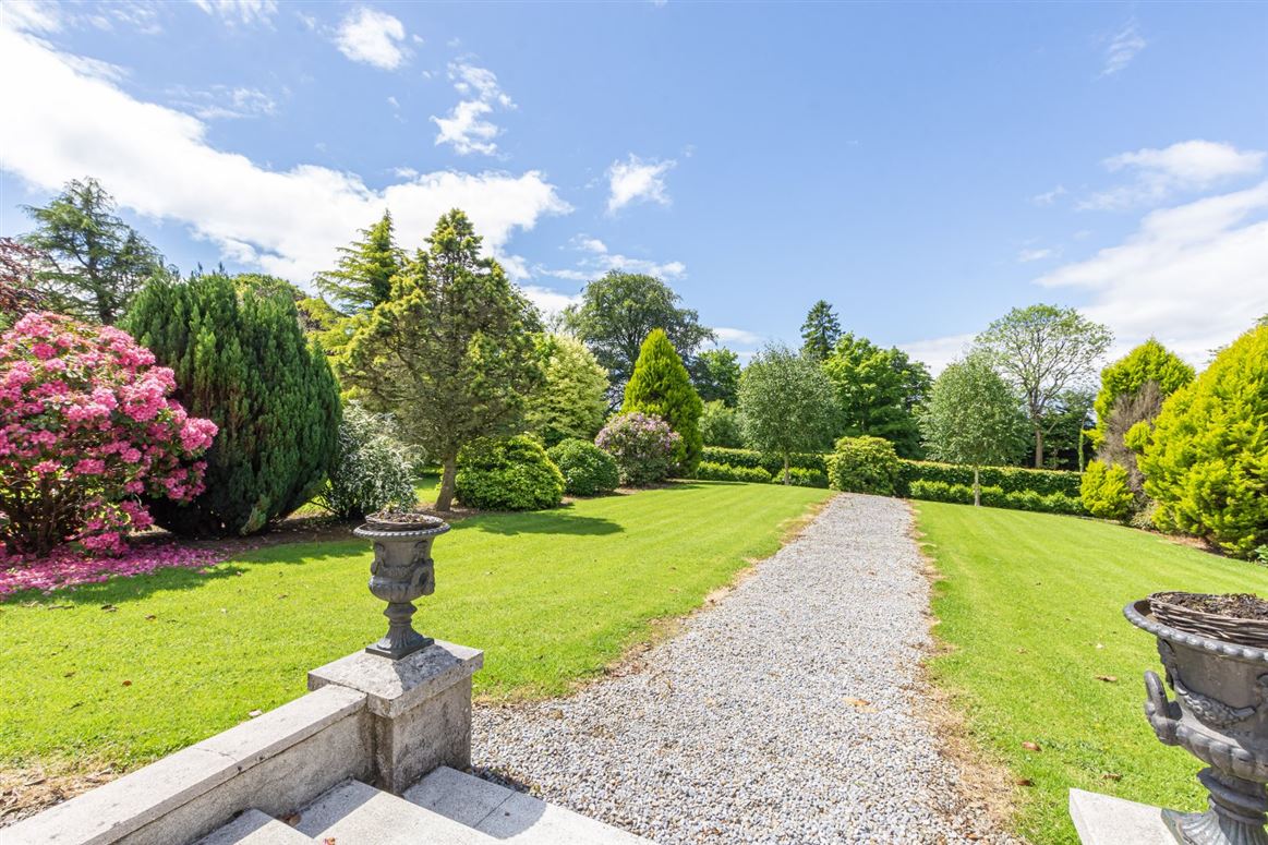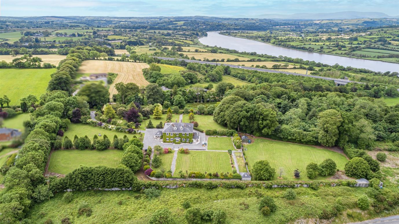 Carrigaleigh House is a splendid Georgian period styled residence, nestled in its own extensive mature woodland grounds and gardens of c. 4.65 acres. This opulent property extends to c. 671 Sqm / c. 7,223 sq.ft. having been constructed in the year 2000. Carrigaleigh House was commissioned with the brief to emulate the look and feel of a traditional Georgian period residence, with exceptional attention to detail having been paid to the design and finishes, even down to the layout of the extensive gardens. Today the property possesses all the luxuries and features one would expect from a property of its stature, but with all the benefits of modern construction methods and an excellent BER rating of B3. The property possesses all the luxuries and features one would expect from a property of its stature. Approached by a traditional entrance surrounded by mature woodland, the property becomes visible from the sweeping tarmacadam driveway through the extensive lawned gardens and mature shrubbery. The gardens surrounding the property have an abundance of trees and hedging with colourful shrubs and plants everywhere. The front door is approached by granite steps the lead to a large wood panelled front door with traditional fan light overhead, setting the tone of the grandeur and attention to the traditional detailing of the property. Upon entering the property, the scale of the home becomes evident when you are greeted by the expansive hallway and 12ft high ceilings, with ornate coving and Waterford Crystal chandeliers framed by decorative ceiling roses. Two formal reception rooms are accompanied by two further sun rooms at the North West side and the South East sides of the house, together with a large drawing room and separate dining room, giving a selection of reception rooms for any occasion. Both formal reception rooms feature solid marble fireplaces with Waterford Crystal chandeliers and matching wall lights, with decorative plaster coving and ceiling roses. The kitchen is to the rear corner of the property with separate utility and laundry rooms and a boot room to the rear. The kitchen is a traditional hand made solid oak painted kitchen with Stanley stove framed by a head height over mantle. The kitchen features a highly detailed solid oak panelled ceiling, mirrored below by a wide plank solid oak floor. The downstairs area also includes a guest shower room, storeroom and linen room. The upstairs is approached by a grand staircase, handmade locally and in a white painted finish, mahogany handrail and with a monkeys tail detail at the end. The stairs is carpeted matching the hallways in a rich red tailor made carpet with border detailing throughout. The upstairs landing leads to four sizable first floor bedrooms all of which have individual entrance hallways, dressing rooms and large en-suite bathrooms including the master bedroom. The second floor has a further two large double bedrooms with fitted wardrobes, and ample storage space with eaves access from both bedrooms.