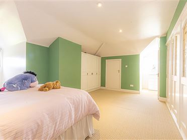 Sizable bedroom suite with separate entrance hallway, and separate entrance. Extensive fitted wardrobes and vanity / dressing area. Carpet flooring throughout. Coving to ceiling with centre rose. Curtains to windows.