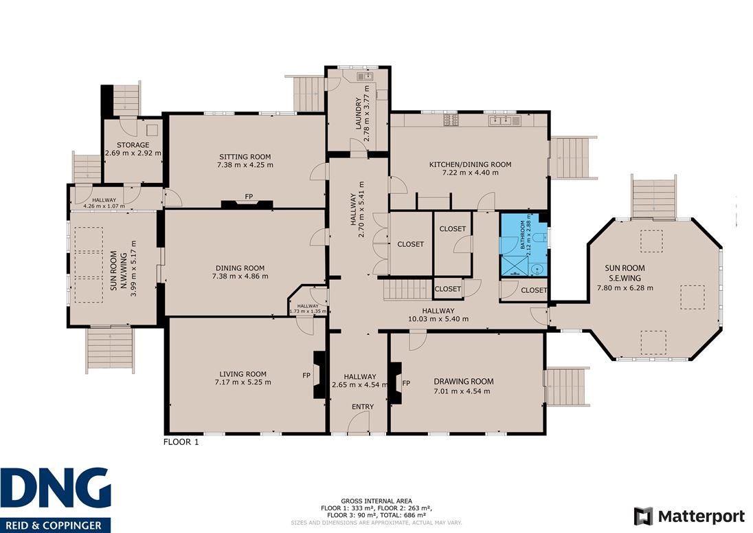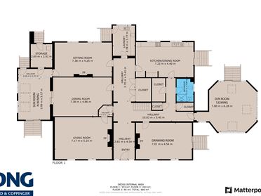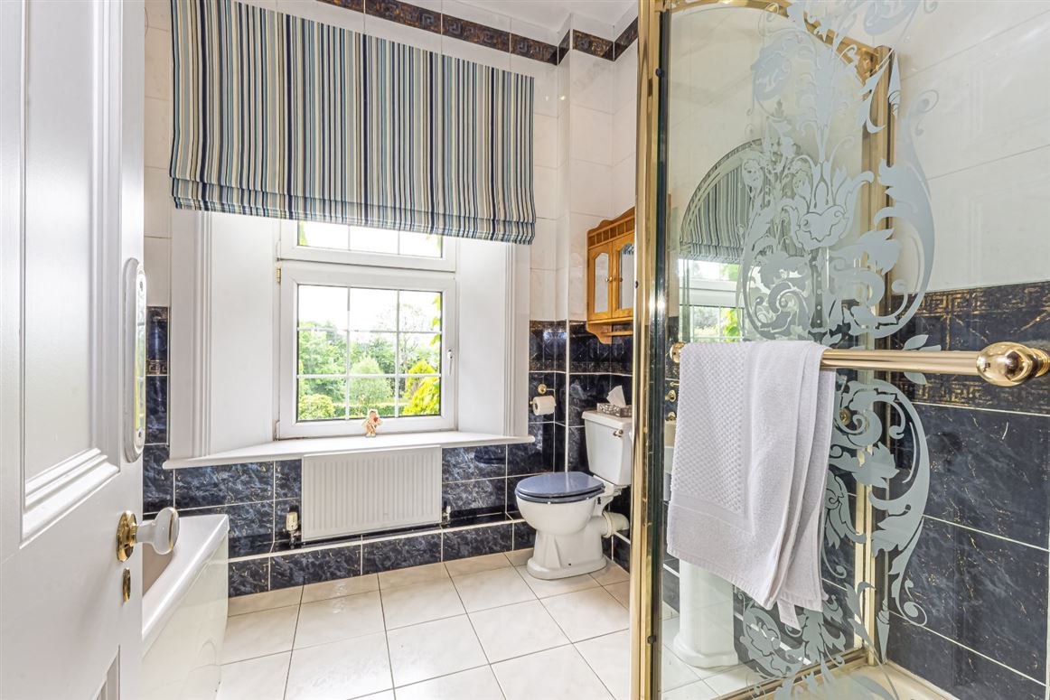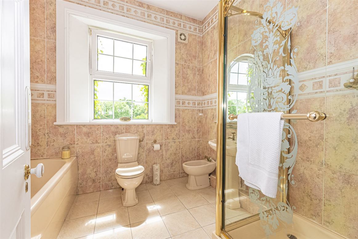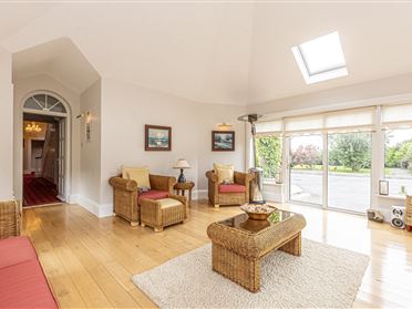 Italian polished porcelain tiled floor and wall tiles. WHB. WC. Shower. Walls tiled from floor to ceiling. Blind to window. Coving to ceiling with recessed lighting.South East Wing Sun Room : 7.80 x 6.28Solid wood flooring. Vaulted ceiling. Velux roof light windows. Sliding Patio door to gardens. Blinds to windows.