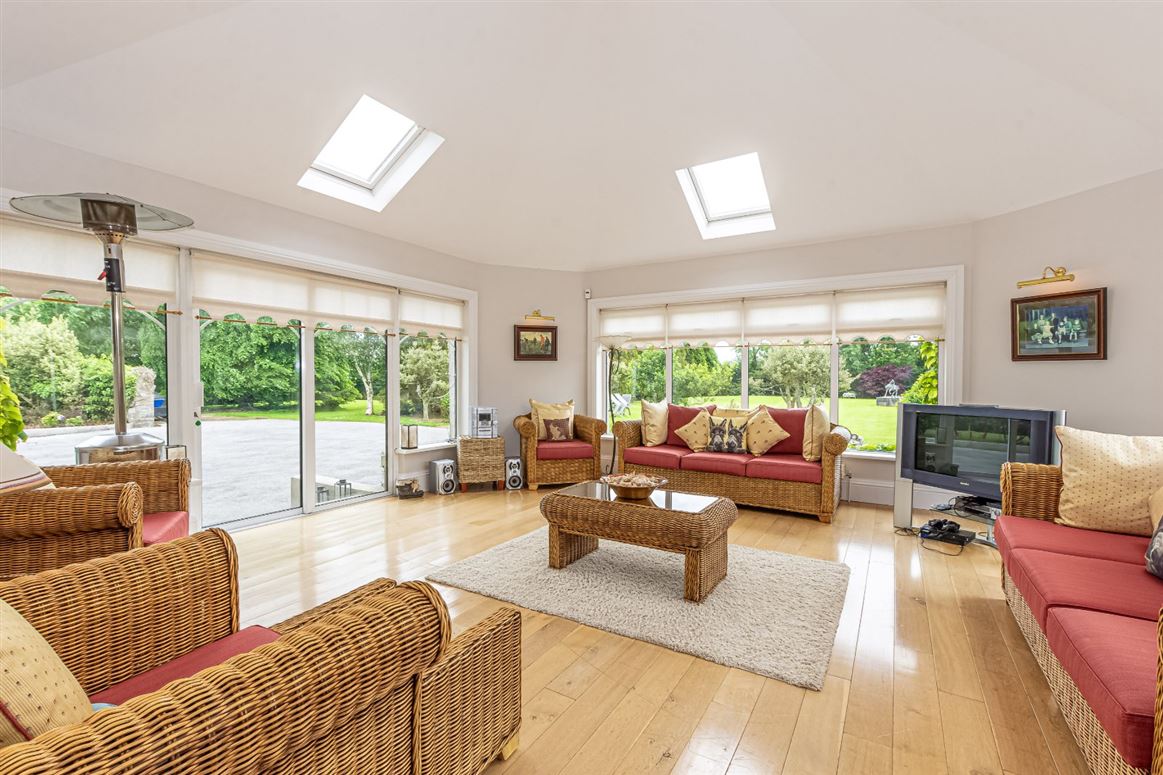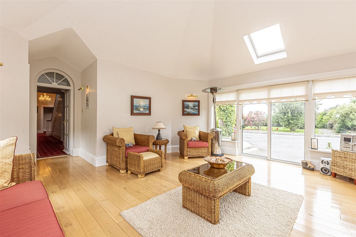 Carpet flooring. Decorative plaster coving and centre ceiling rose. Curtains to sliding doors to the North-East wing sunroom.
