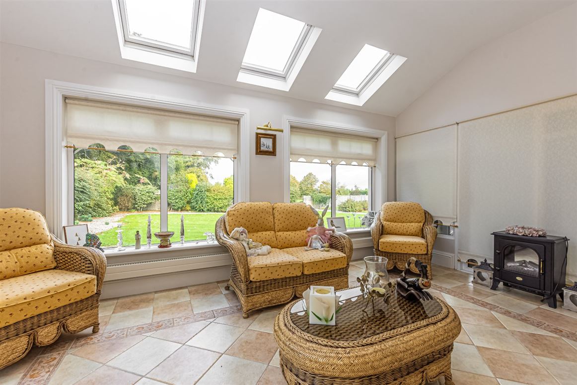 Tiled flooring. Blinds to patio doors Blinds to windows. Velux roof lights. Accessible through both the dining room and the sitting room. Sliding patio door to gardens.