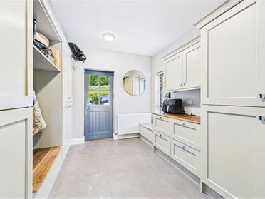Cloak room with fitted 'boot room' styled unit. Ample storage throughout with fitted ground and eye level units matching the utility room.