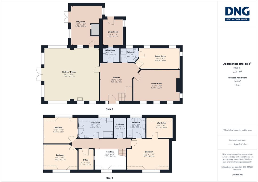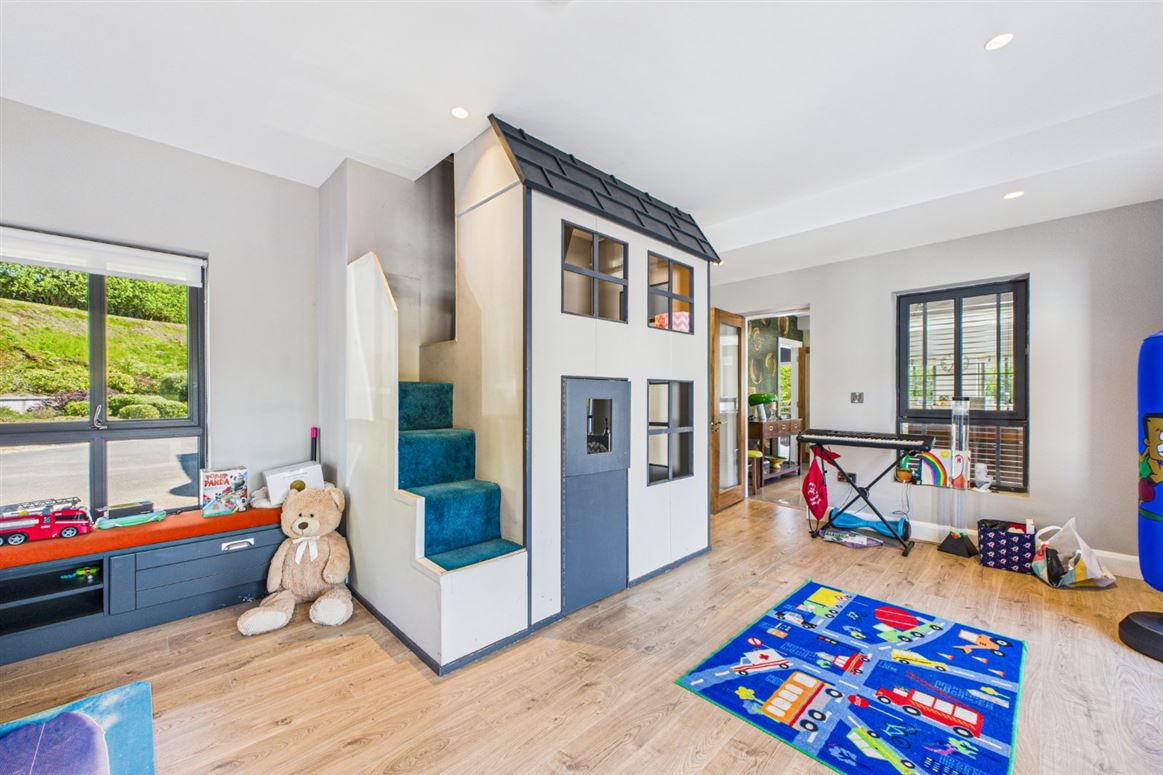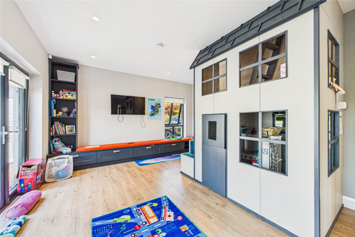 Large playroom off the kitchen area, suitable also as a reception room. Feature playhouse with loft access.