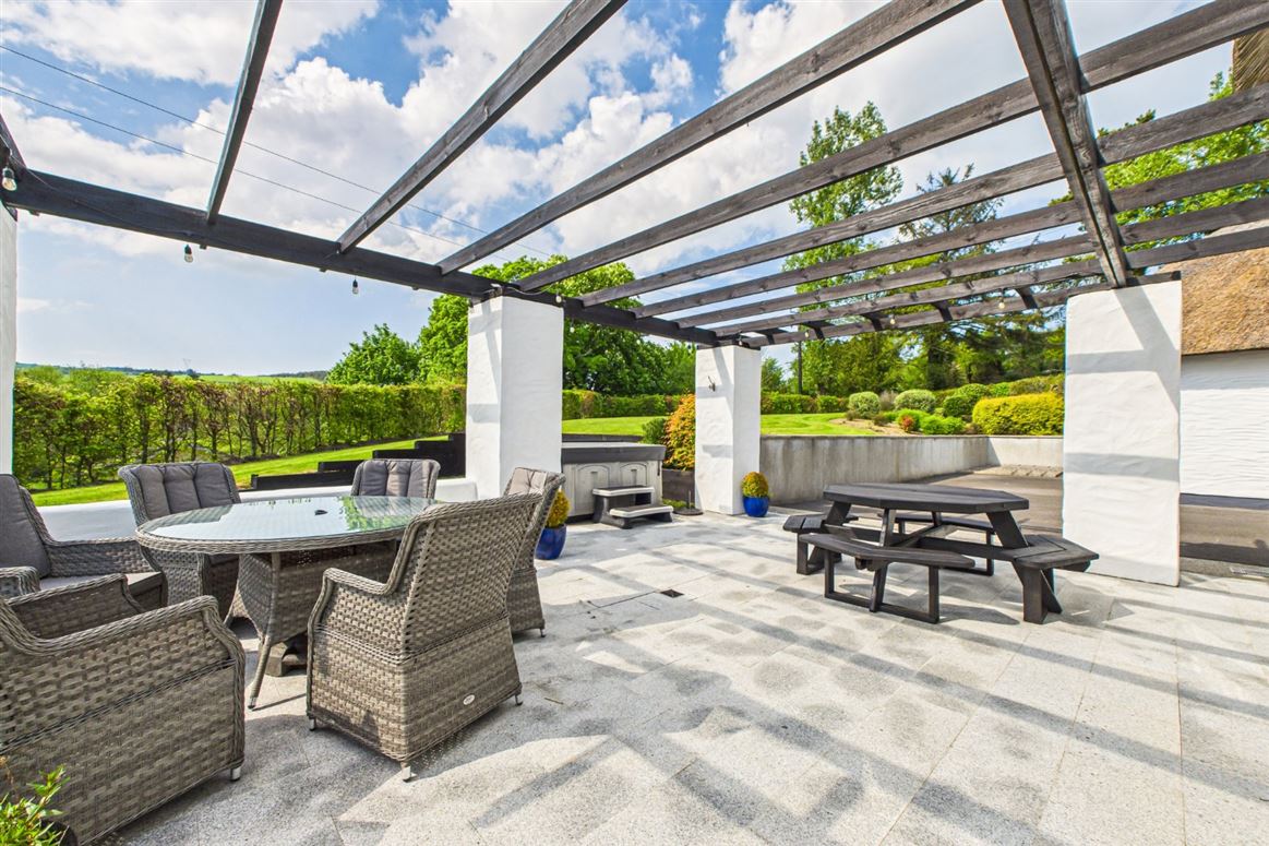 The property is equipped with cutting-edge features including a built-in multi-room audio and entertainment system, while enhancing the overall comfort and convenience of the home further is a cutting-edge security and camera system affording the owners additional peace of mind. Each room has been designed to maximize natural light and views of the surrounding countryside, with French doors opening onto sunny terrace off the kitchen and dining area, with a large patio and overhead Pergola, ideal for outdoor living and entertaining.