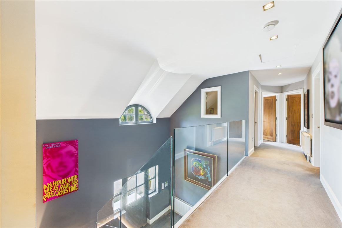 With feature glass handrail, overlooking the entrance hall, with carpet flooring.