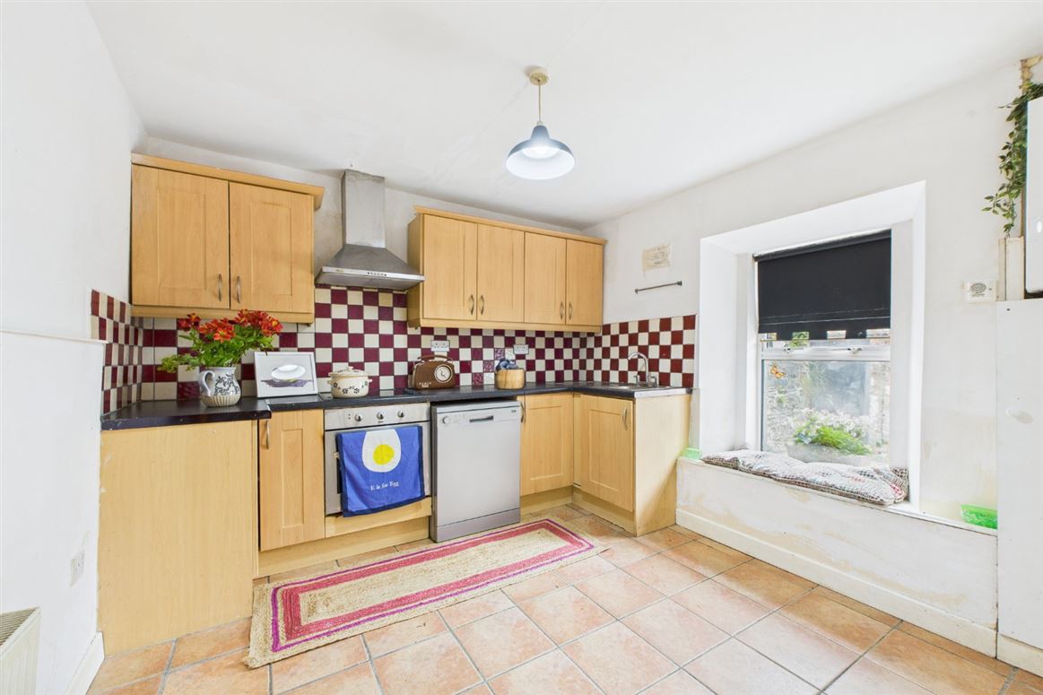 Tiled flooring. Fitted kitchen with integrated owne and hob. Tiled splashback. Blinds to window.