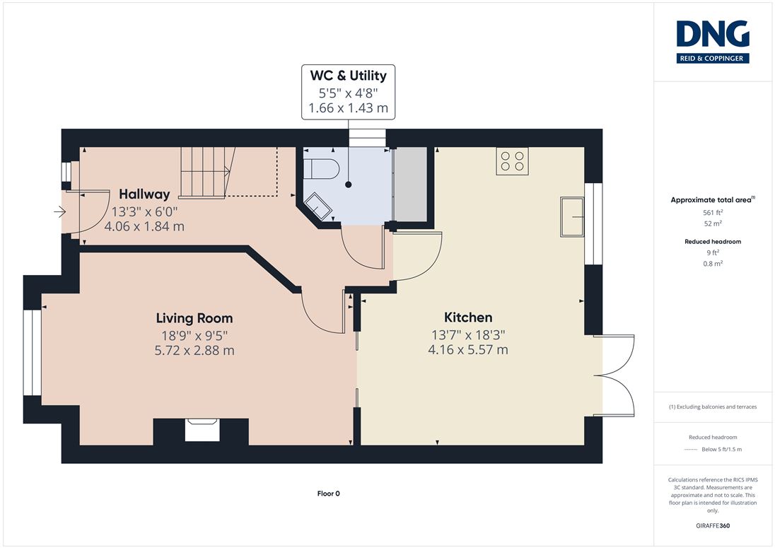 Newly tiled floors in a cream porcelain tiled finish. Storage under stairs.