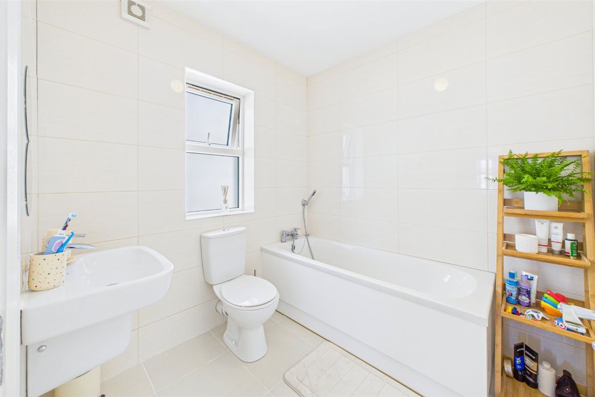 WC, WHB, bath. Beautiful filed floor and walls to ceiling. Shower mixer to bath.