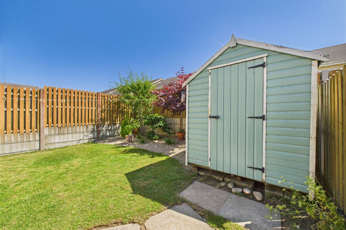 This property provides parking for two cars to the front with a cobble lock driveway, and a spacious East facing rear garden in lawn with planted area with trees and shrubbery and a garden shed.