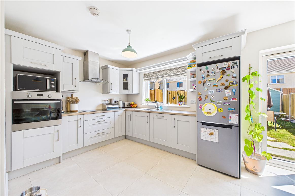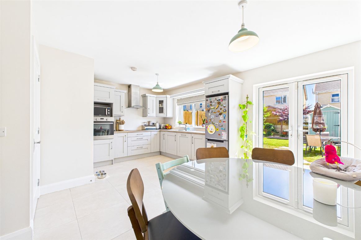 Tiled matching hall. Shaker style fitted kitchen. Fitted electric oven and ceramic hob. Stainless steel extractor unit. Integrated dishwasher. Roman blinds to window on south. French doors to rear garden. Large dining area tiled matching kitchen