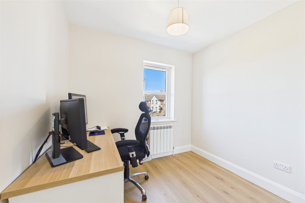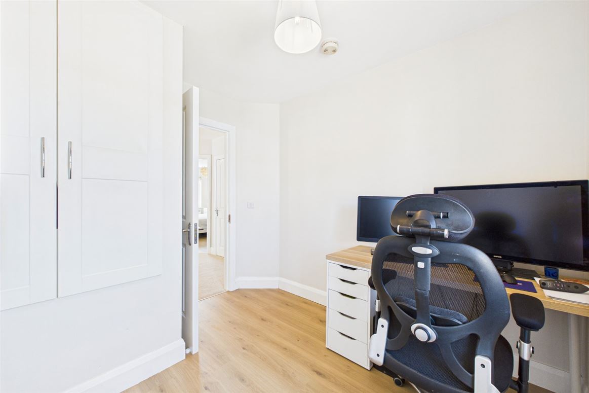 Laminate wood flooring. Generous double bedroom. Fitted wardrobes. Curtains to window.