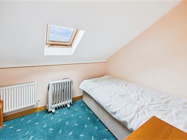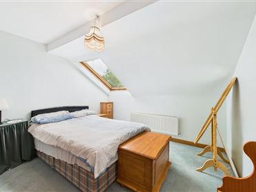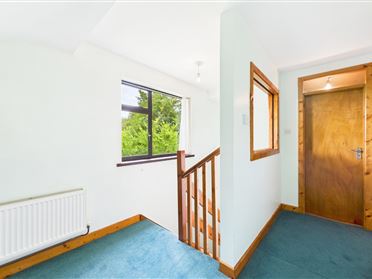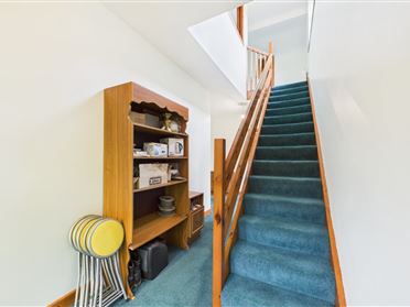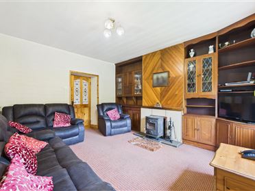 Upon entering, you're welcomed by a generous entrance hall that sets the tone for this warm and inviting home. The ground floor boasts a large front-facing living room, complete with a solid fuel stove and elegant built-in cabinetry, ideal for cosy family evenings or entertaining guests.