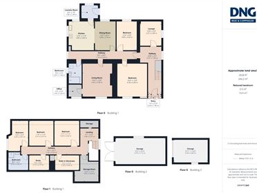Also on the ground floor are two bedrooms, a main bathroom, and a selection of versatile living spaces including a lounge and an office, perfect for remote working or study. The ground floor area also offers potential to accommodate a dependant relative or co-living arrangement with separate ground and first floor bedroom accommodation.