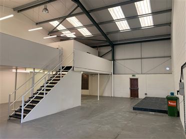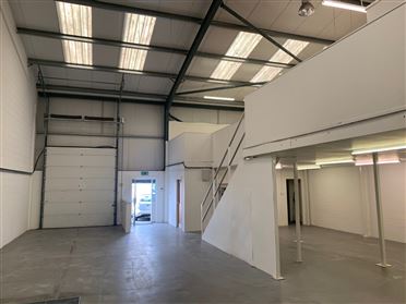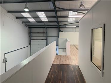 Light Industrial unit of c.2,045 sq.ft. with mezzanine floor of c. 700 sq.ft. with additional office space. The unit is constructed from a steel modular frame with block in-fill walls, insulated metal cladding to roof and wall sections, sectional roller shutter door with separate pedestrian access. The property comprises of main warehouse area, office, two toilets, and mezzanine floor area with second large office. The property comes fully equipped with modular lighting, full alarm system, and 3-phase power. Located on the Cork Rd. in Waterford within Waterford Business Park, the property is conveniently located adjacent to the Waterford IDA Industrial Estate. This location also affords easy and convenient access to the new outer ring road, the Waterford City by-pass and new river crossing, and the M9 Waterford to Dublin motorway as well as most other routes.