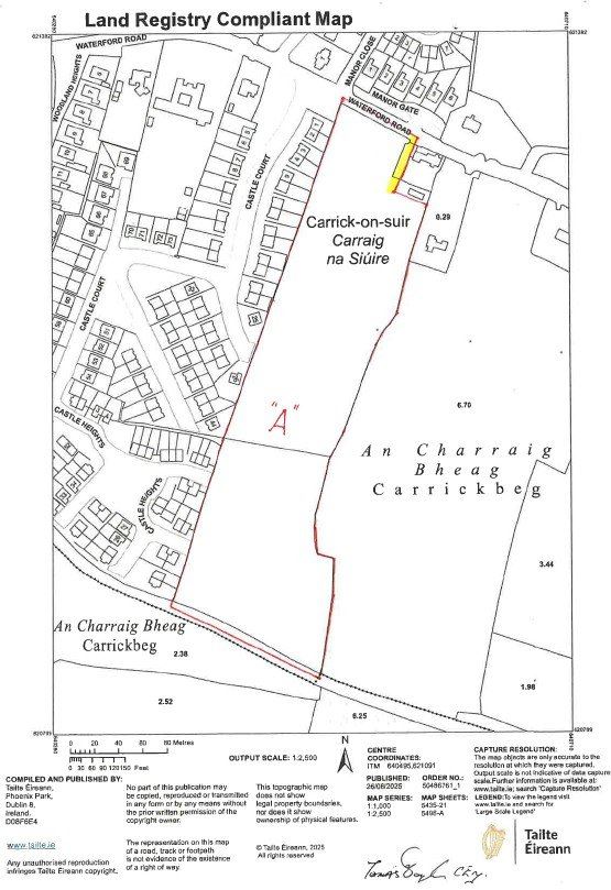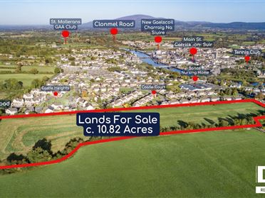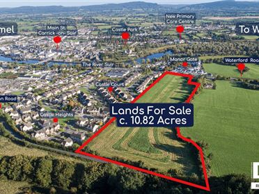 The subject lands extend to c. 4.379 Hectares / c. 10.82 Acres of which c. 9.02 Acres are Zoned 'New Residential'. This superb development site is located in Carrick-on-Suir in Co. Tipperary, on the Southern banks of The River Suir at Carrickbeg. The lands are flanked by two regional roads at either end of the site, with the Waterford Road (R680) at the Northern end of the site, and the Lemybrien to Carrick-on-Suir Road (R676) at the Southern end of the site, which also forms the border between Co. Tipperary and Co. Waterford. The site is rectangular in shape, gently sloping in a Southerly direction, with access possible from both roads.