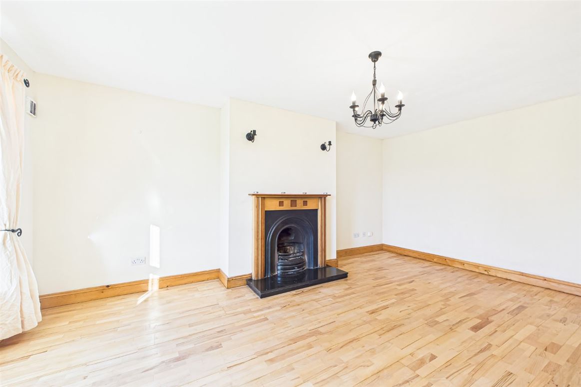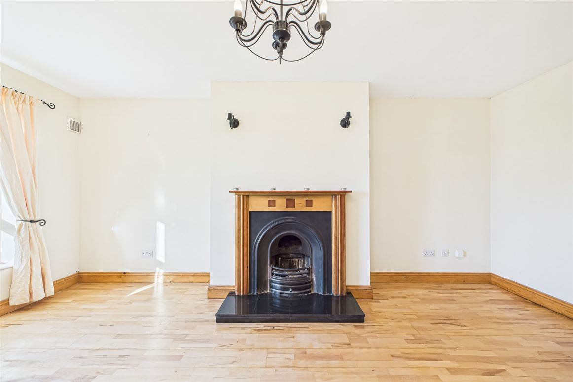 Laminate timber flooring. Open fireplade with marble hearth. Curtains to windows.