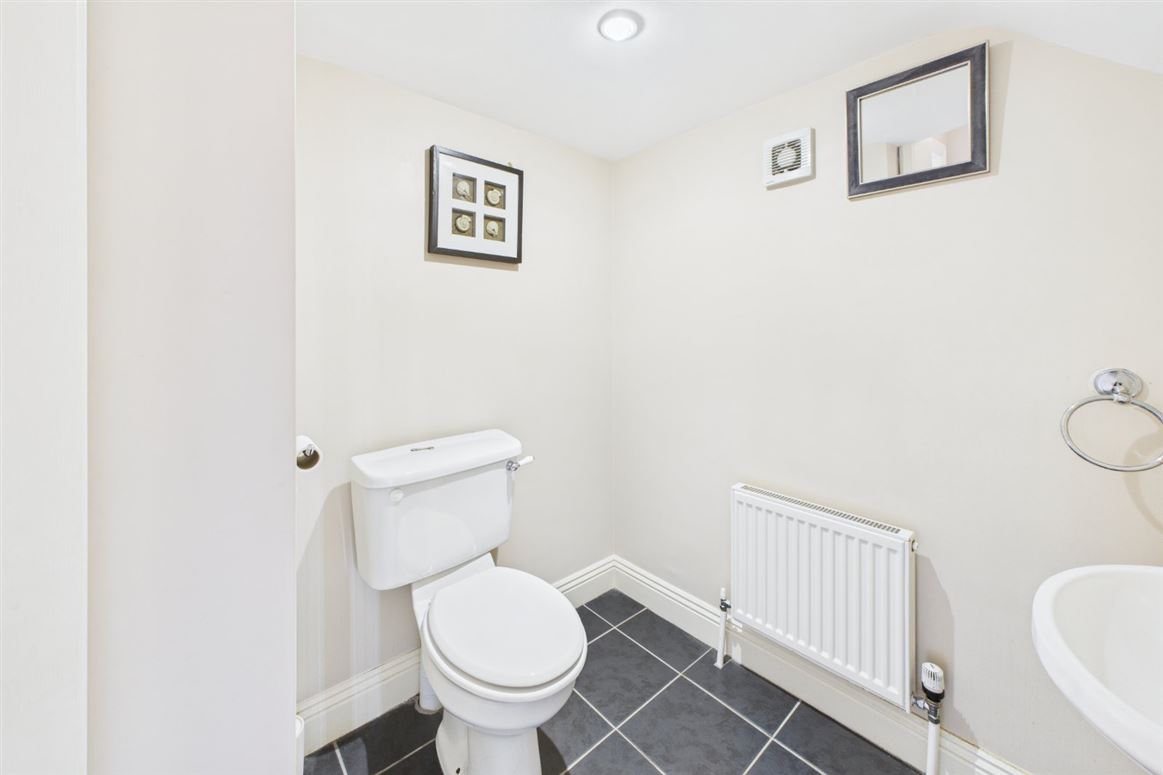 Extending to approximately 105 Sq.m. the accommodation is bright, airy, and thoughtfully laid out. The welcoming entrance hall leads to a spacious living room filled with natural light. A well-appointed kitchen/diner overlooks the rear garden, offering an ideal space for family living and entertaining. A convenient ground-floor WC completes the downstairs accommodation. Upstairs, a generous open landing leads to three well-proportioned bedrooms—two doubles and one large single—including a master bedroom with en-suite shower room. A modern family bathroom serves the remaining bedrooms.
