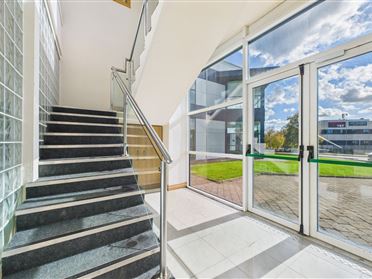 Prime office unit extending to c. 3,400 sq.ft. overall, located within the prestigious Cleaboy Business Park development in Waterford. Situated just off the outer ring road, and the new N25 Waterford bypass and Southlink bridge link, the location is highly accessible and close to the Waterford IDA Industrial Estate. This superb office premises is currently set out with a ground floor reception area and two offices occupying c. 617 sq.ft. with the remainder in one large floor plate of 2,813 sq.ft. at first floor level. This bright and spacious office premises has an extensive office fitout with air-conditioning, data cabling and suitable electrical installations. The Cleaboy business park is home to a number of high-profile businesses including MJ Flood, STS, Cantec, MK Brazil, SISK, Infosys, and Fiskars to name but a few. There is ample free on-site parking, with dedicated spaces to the front and rear of the property.