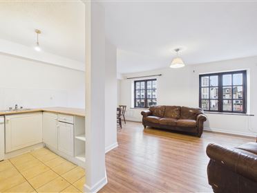 Accommodation comprises an entrance hall, two generously sized bedrooms, a main bathroom, a comfortable living room and a semi-open plan galley-style kitchen, ideal for modern city living. The apartment benefits from a superb riverside setting with river views, along with the added security and convenience of a gated development with on-site parking.